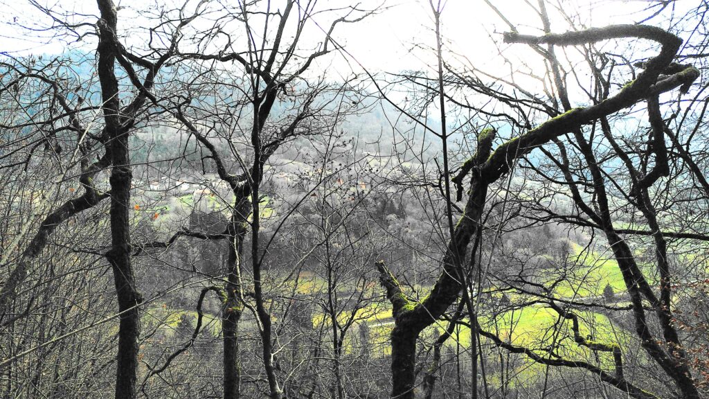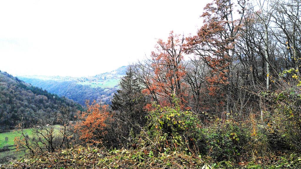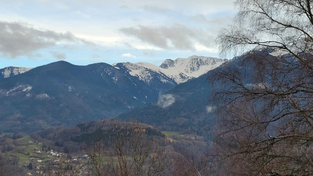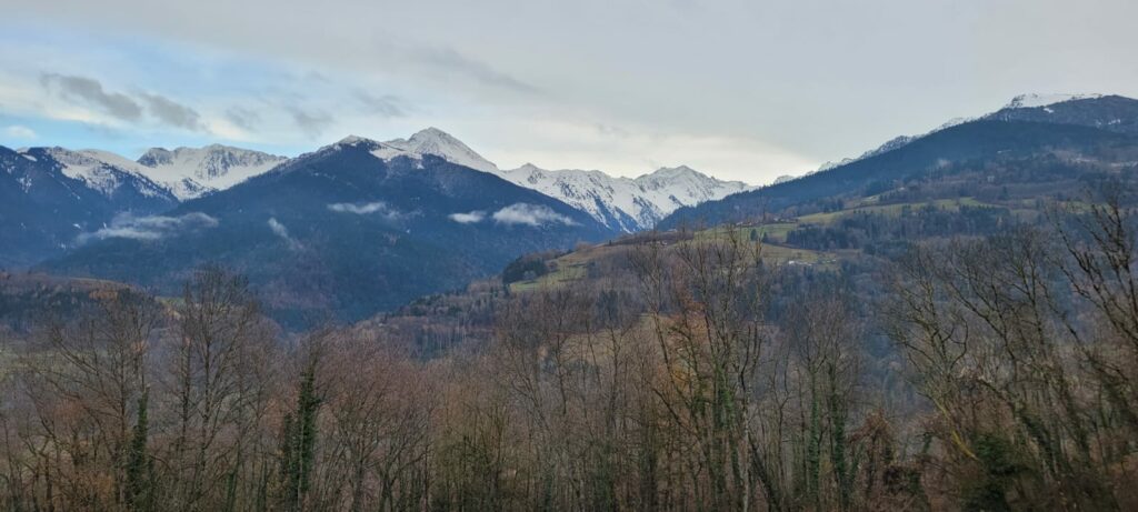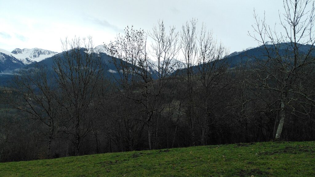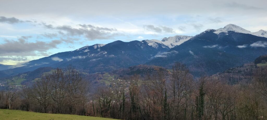 Nous étions 14 au départ de cette balade d’après-midi. Au départ nous avons eu du soleil pour contourner le lac de St Clair et ensuite traverser le petit village de Détrier. De là nous attaquons la montée en forêt sur un chemin assez large. La pente est assez relevée et régulière. Les nuages ont pris le dessus, ce qui ne nous empêchent pas d’admirer les sommets enneigés des Belledonnes : les Grands Moulins, la pointe du Rognier, etc … . Après 350 m de dénivelé positif nous arrivons à la chapelle Ste Marguerite. Nous n’avons pas accès au Mt Pézard, car le terrain est privé, et le chemin bien clos. Nous avons d’ailleurs croisé le propriétaire, un personnage bien mal léché, qui nous a fait comprendre que l’on n’était pas les bienvenus et qui a voulu nous intimider avec son tracteur. Bref, nous avons entamé notre descente, moins pentue que la montée, mais avec plus de portions goudronnées. Après être passés à Arvillard, nous avons retrouvé Détrier, puis le parking du lac. Il était temps car la nuit arrive.